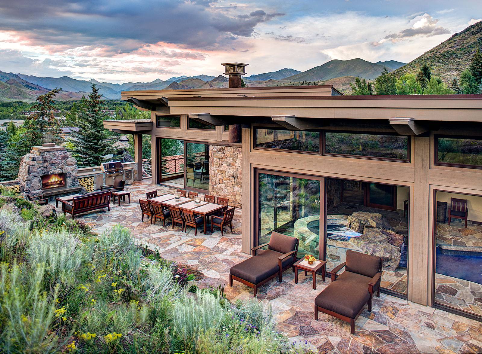 The residence and its interior spaces are designed and oriented to capture the panoramic mountain and valley views.